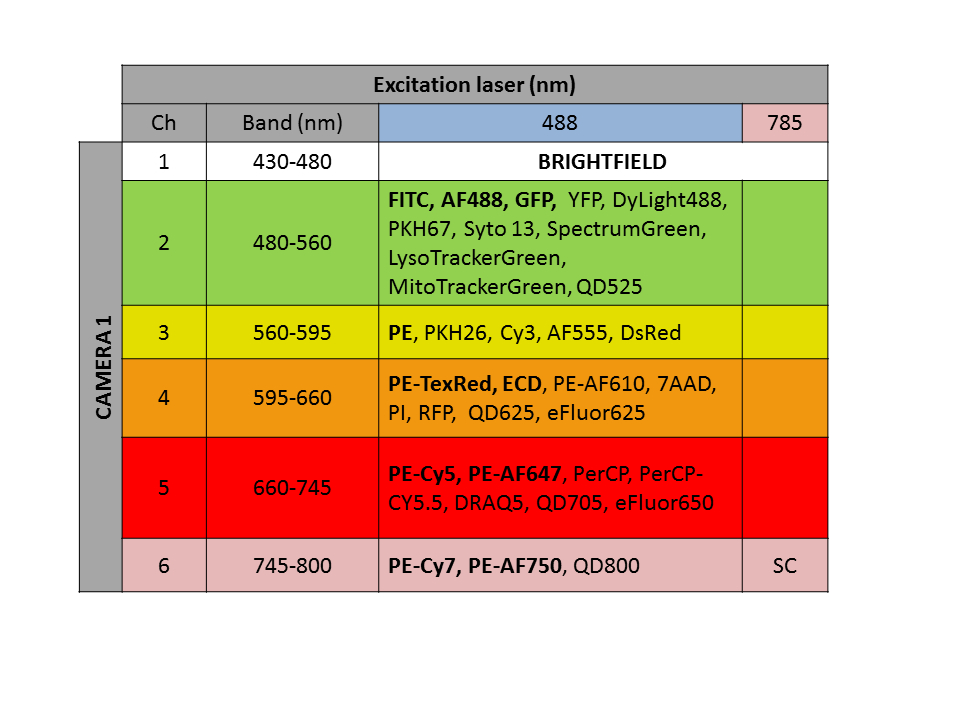 The table of suggested fluorochromes for being used in our ImageStreamX can be seen here.